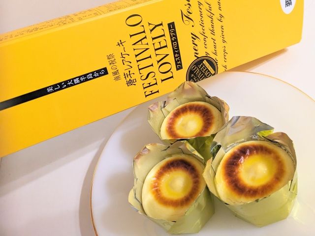 人気なのは「唐芋レアケーキ フェスティバロラブリー」。当初は鹿児島空港に訪れる客室乗務員の間で人気になり、「スチュワーデスのケーキ」とも呼ばれていました。今では鹿児島空港のお土産の中でもトップクラスの人気商品です!店舗では、タイミングが合えば焼き立ても食べることができるらしいです。