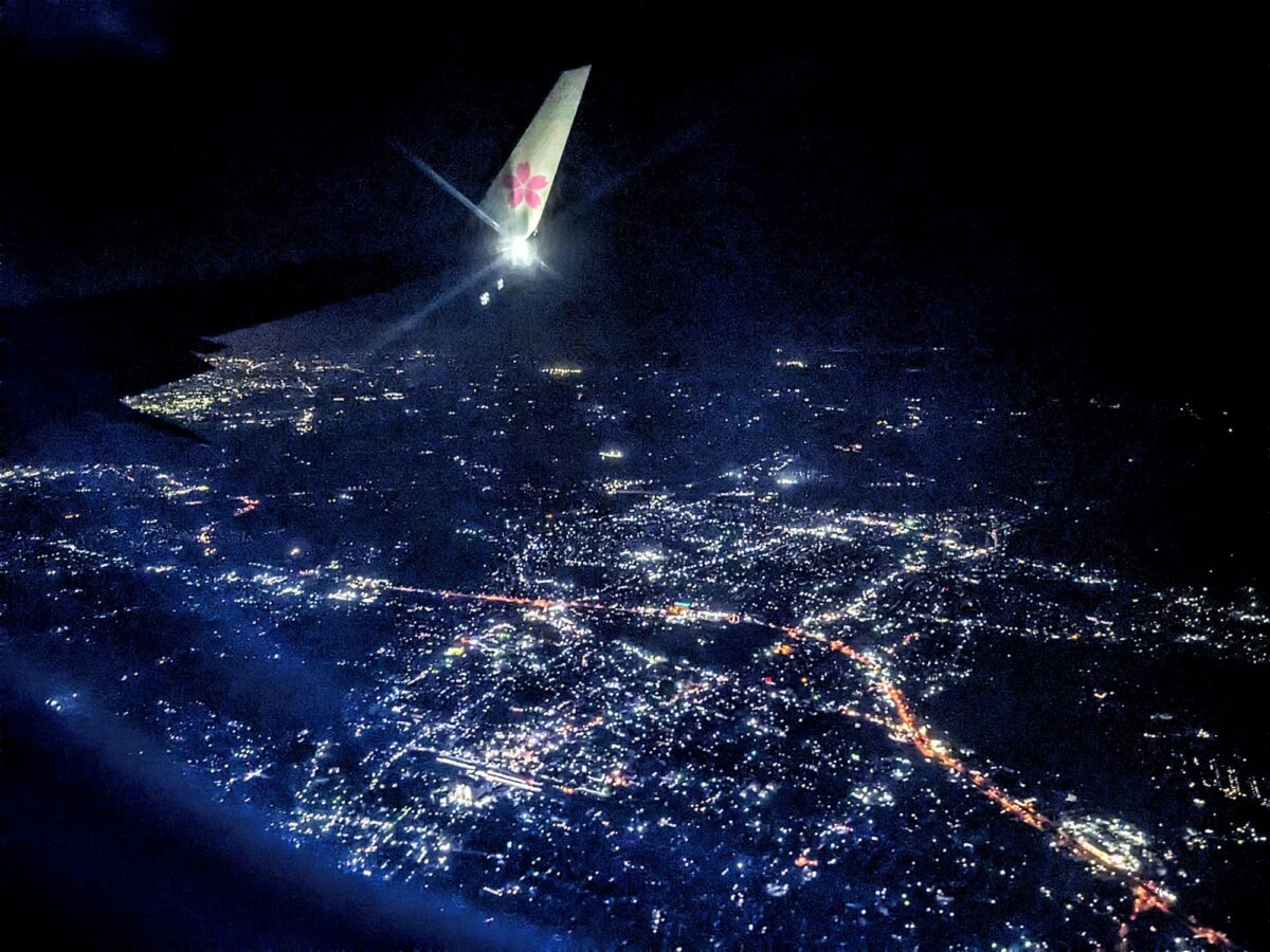 窓の外に街の明かりが広がってきたら、羽田空港はもうすぐぞこ!
