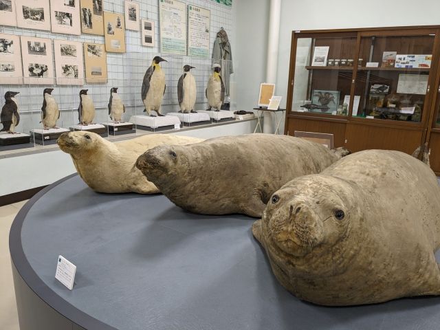こちらはカニクイアザラシ、アデリーペンギン、コウテイペンギンなど南極圏の生物の標本。サイズも大きく、なかなかの存在感です。