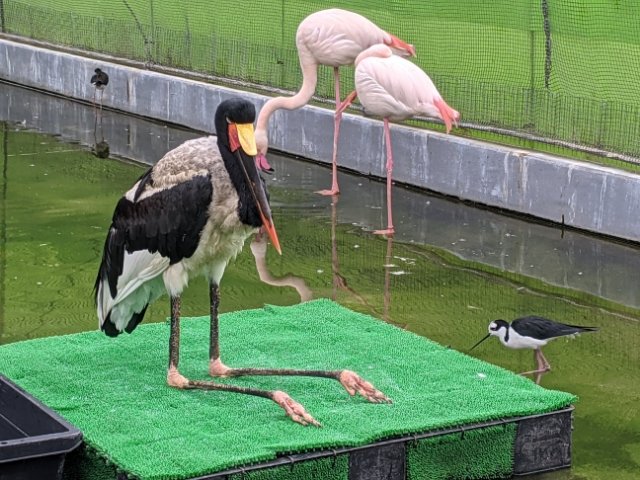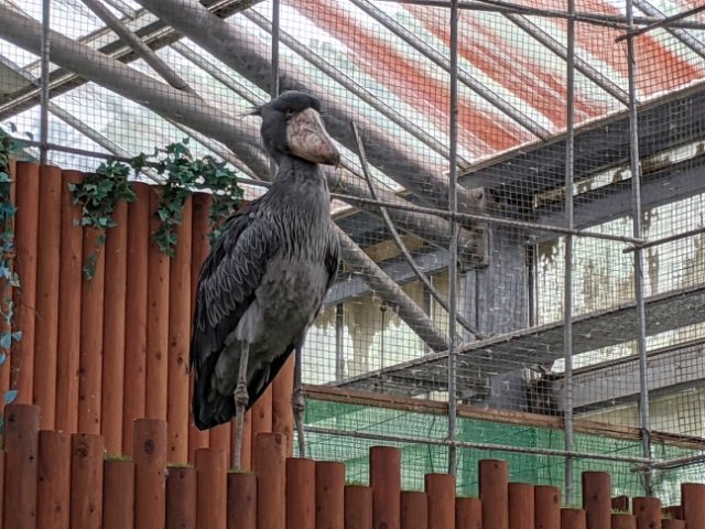 堂々とした出で立ちは完全にこの花鳥園のラスボス。妙に高い位置に留まっており、人々を見下しているようにも見えます。滅多に動かないのですが、たまにバサバサっと飛び上がることも。ちなみに、名前に「コウ」と付きますが、コウノトリの仲間ではなくペリカンの仲間です。