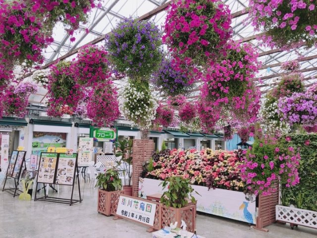 花鳥園という名の通り、花もたくさん。天井から吊るされているカラフルなインパチェンスは、パラダイス感をこれでもかと演出してくれます。