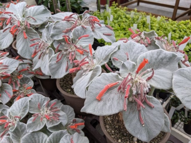 こちらはブラジリアンエーデルワイス。崖に生えるため、「断崖の女王」という変わった別名をもつ植物。毛がびっしりと生えた葉っぱに、モールのような花がついています。