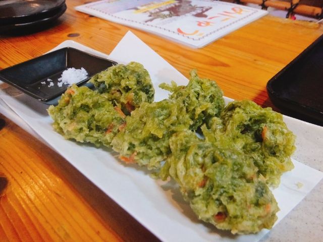 ついでにアオサの天ぷらも。サクサクした天ぷらでとっても美味しいです。