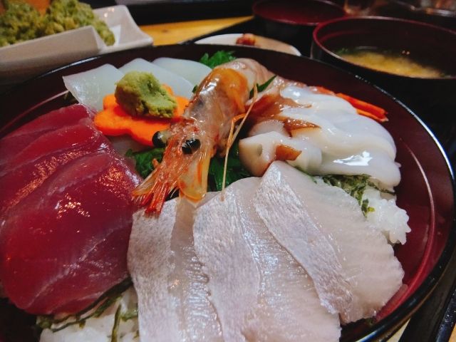 お腹が空いたので、古仁屋港近くの神鷹というお店で海鮮丼食べました。