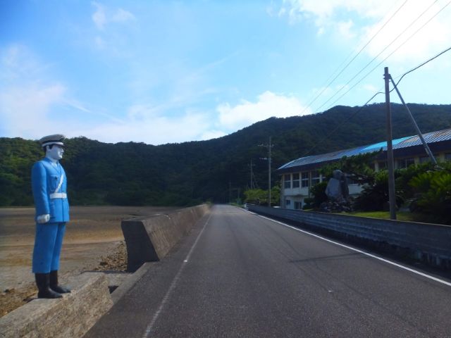 真っ白な顔、そして無表情・・・宮古島の各所に立つ「宮古島まもるくん」にそっくり。こちらの方の名は伊子茂マモル君。海辺に立つ彼は、今日も明日も伊子茂の人々を見守っています。