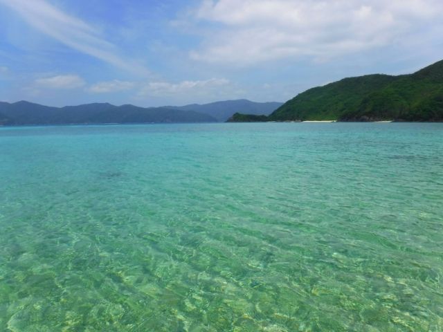 加計呂麻島東部の一番はじっこにあり、瀬相(せそう)港から車で約40分、生間(いけんま)港からだと約70分と離れています。ここには実久ブルーと称される青がとても美しい実久ビーチが。