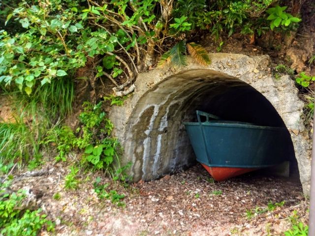 加計呂麻島には戦争遺跡が多数残されていますが、その多くは個人で行くことができない場所にあるためガイドが必要です。しかし、個人でも見学可能なところもいくつかあります。そのうちの1つが呑之浦にある震洋隊基地跡。