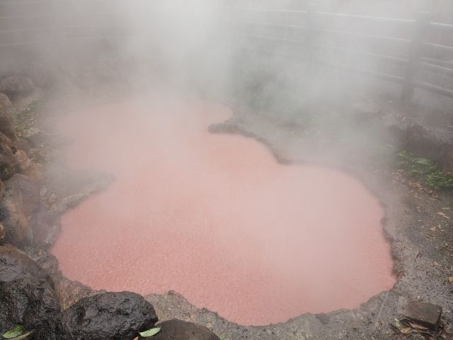 6丁目はまたまた熱泥タイプの地獄ですが、鉄が酸化して赤い色合いとなっています。これはミニ「血の池地獄」ですね!