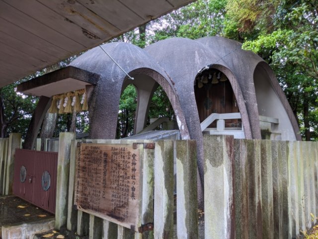 丸っこく印象的な社殿。こちらは焼き物を造成するための丸窯をモチーフにしてデザインされています。