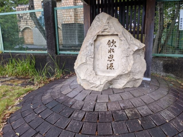 それに対する返礼として贈られたのが、こちらの石碑「飲水思源碑」。飲水思源(いんすいしげん)というのは、中国の故事成語の1つで、「水を飲むときはその源を思へ」という意味。