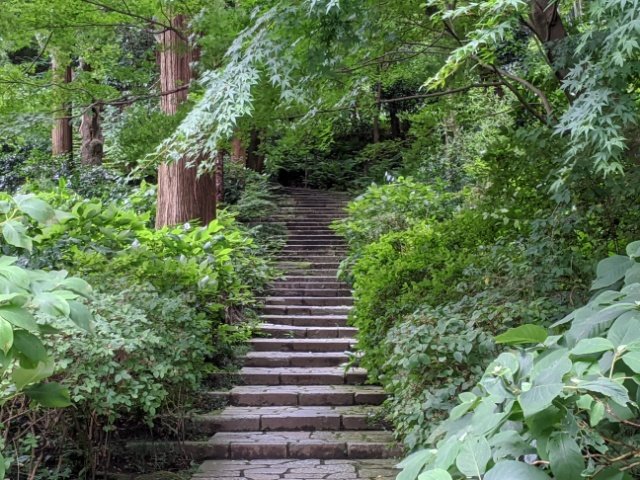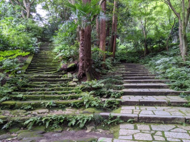 受付を済ませたあとも、しばらく道は続きます。なかなか急な石段を登っていくことになるので、暑い日はタオルや水分をお忘れなく。(バス停からのルート上に自販機はいくつかありました)