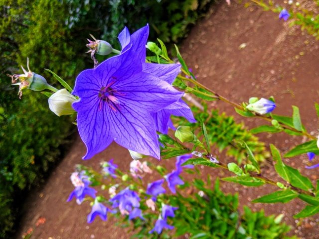 紫色の上品な花を咲かせるキキョウ。星形の花は、明智家の家紋や晴明神社の神紋などでもおなじみのデザイン。