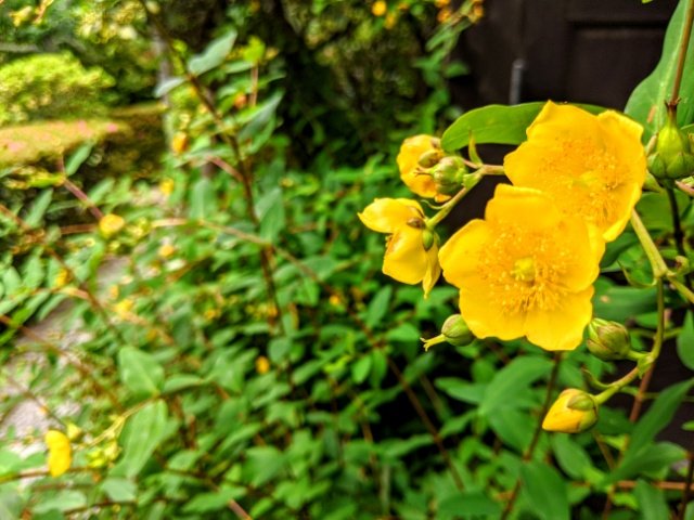 黄色く小さな花がかわいらしいキンシバイ。5枚の花びらが梅ににていることから「バイ」と名前に付きますが、実際はオトギリソウの仲間です。
