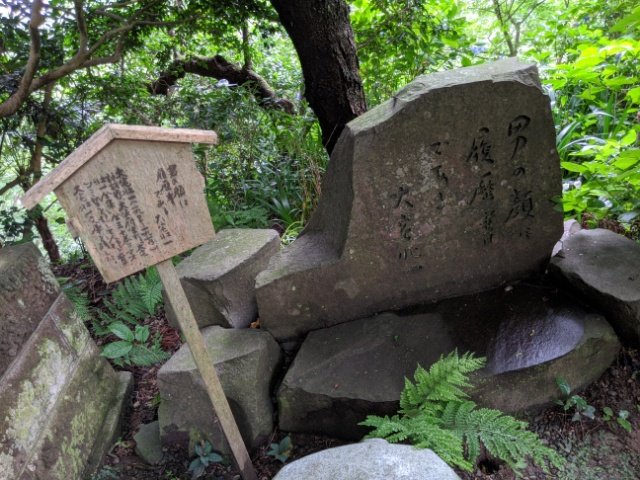こちらは大宅壮一評論碑。「一億総白痴化」や「口コミ」、「恐妻」など数多くの造語を世に生み出していますが、そのうちの一つである「男の顔は履歴書である」が力強く彫られていました。