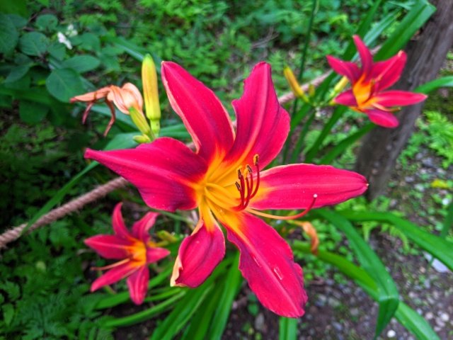 赤と黄色という派手なカラーリングのヘメロカリス。咲いていたのはわずか3つでしたが、存在感抜群です。