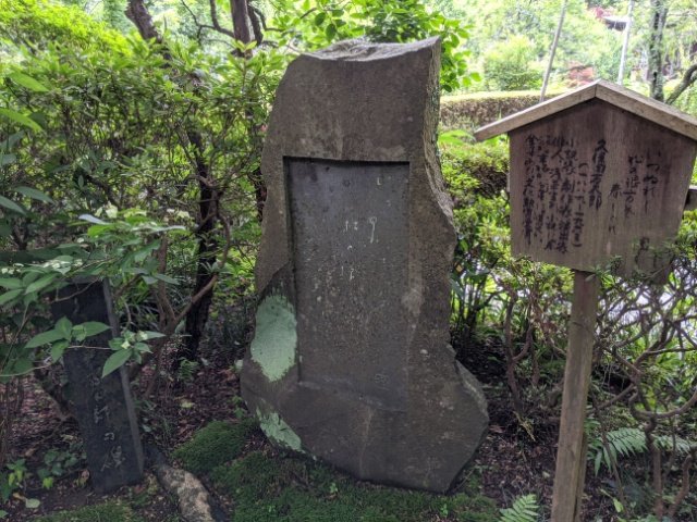 境内には浅草の小説家・久保田万太郎の碑を見つけました。刻まれているのは「いつぬれし松の根方ぞ春しぐれ」の句。