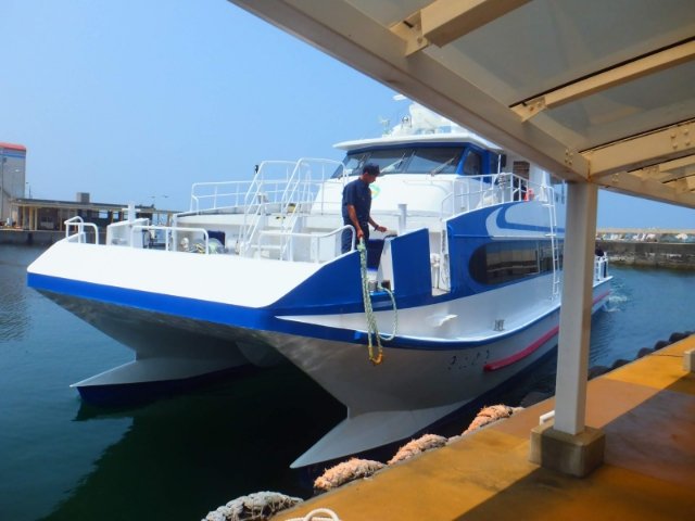さて、やっと港へ帰ってきました。一周の所要時間は【約2時間】でした。帰りの船までは時間があるので、港の待合室で一休み。自販機、ベンチ、トイレ、そして冷房完備!!8月の日差しに奪われた体力回復タイムです。