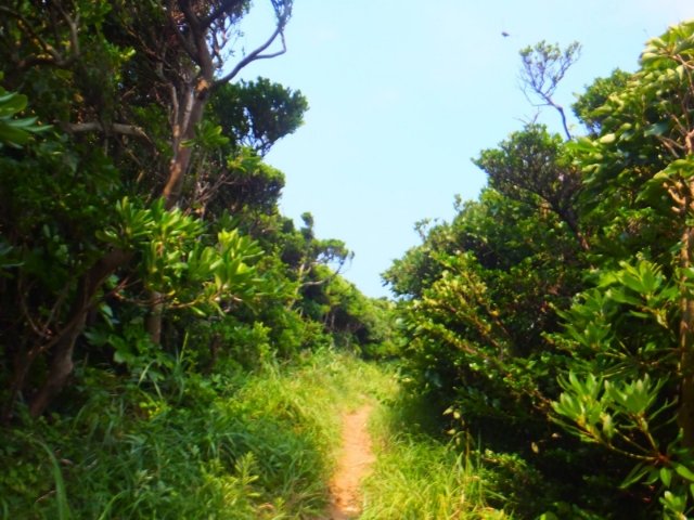 監的哨からはまたまた山道。虫に刺されたり、アブラゼミにおそわれながらも進むと、だんだん道が開けてきます。