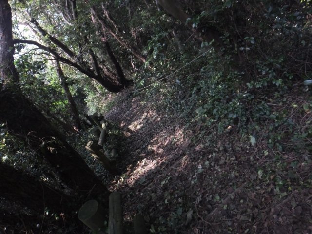 今回は引き続き神島一周の後半戦です。木々が晴れていた神島灯台からは、再び森の中の道に入ります。舗装されてない下り坂なので、足元には細心の注意を。神島は集落を離れると、基本的にこういった未舗装の道になります。