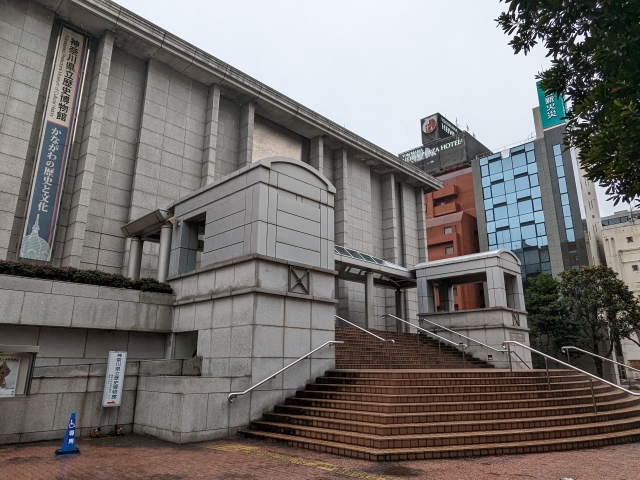 馬車道駅のすぐ近くに建つ横浜市歴史博物館は、横浜正金銀行として1904年に完成した建物を神奈川県が買い取り、1967年に神奈川県立博物館として開館しました。1995年に自然史の分野が神奈川県立生命の星・地球博物館として分離し、神奈川県立歴史博物館として再整備されました。