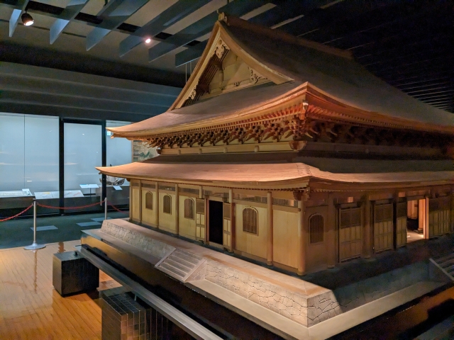 さらに、フロアの一角には円覚寺舎利殿の実物模型も。この博物館が開館する際に、県内の代表的な歴史的建築として設けられたそうです。