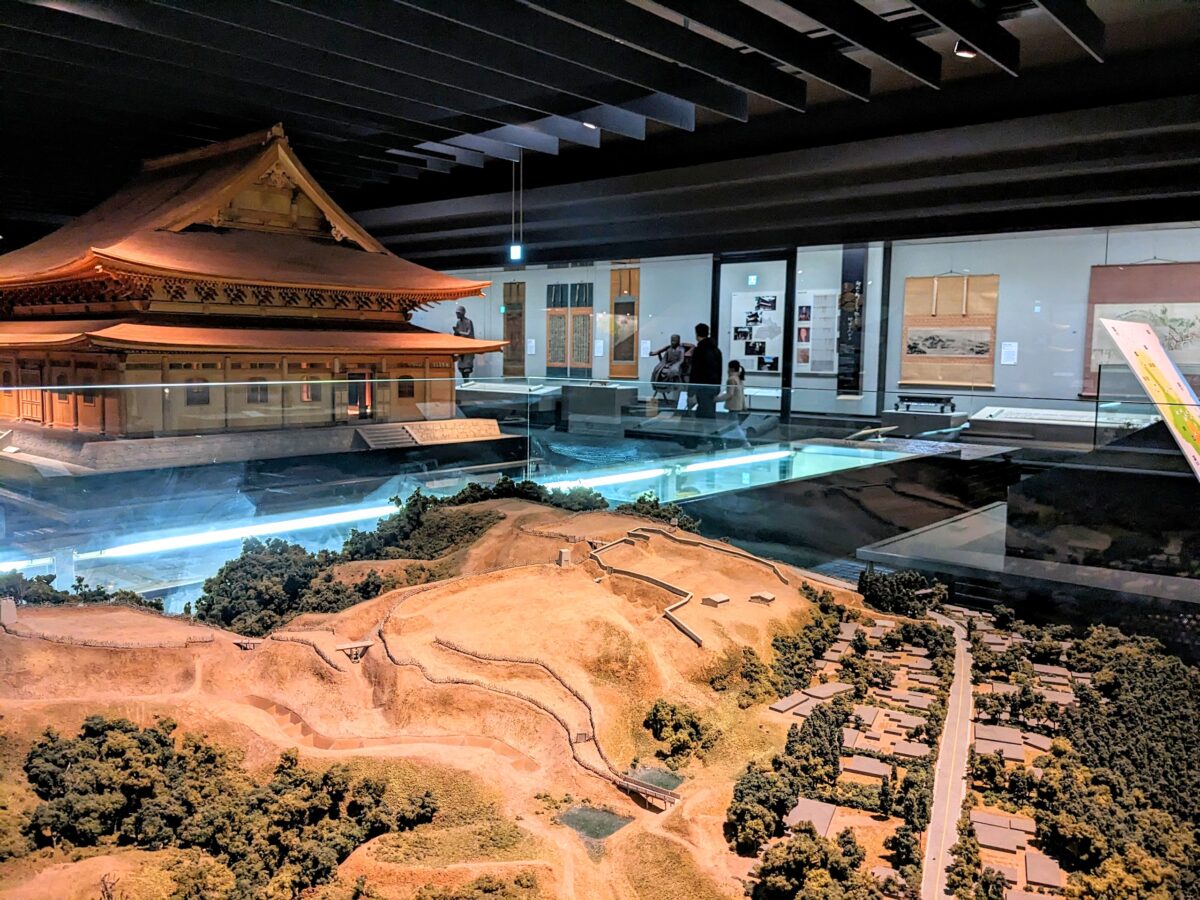 こちらは円覚寺仏殿の1/10復元模型。1573年の円覚寺仏殿再現計画の図面をもとにつくられています。鎌倉五山に数えられるお寺、かなりの規模の建築であったことがわかっているそう。