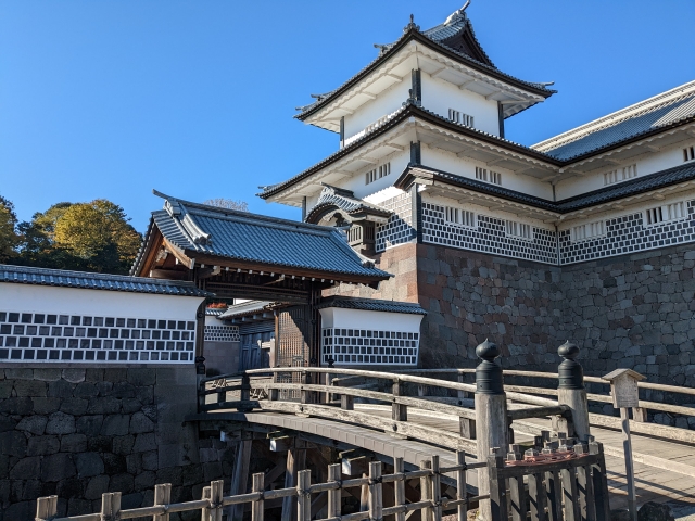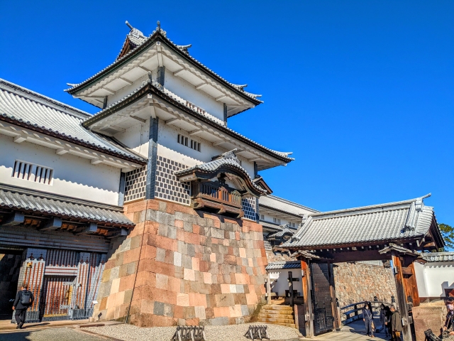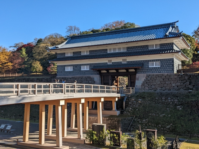 こちらは2020年に復元が完了した西側の「鼠多門」。金沢駅方面から向かう方は、こちらから入ることもできます。尾山神社の境内から鼠多門橋で繋がっているので、合わせて訪問するのもおすすめ。