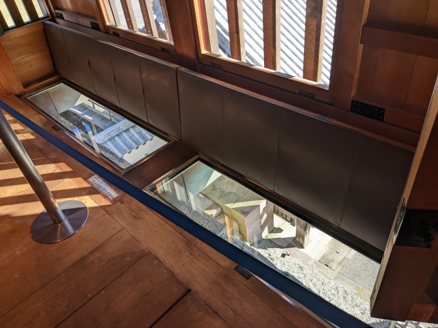 さらには、攻め入る敵へ向けて攻撃するための「石落とし」も設置されています。
