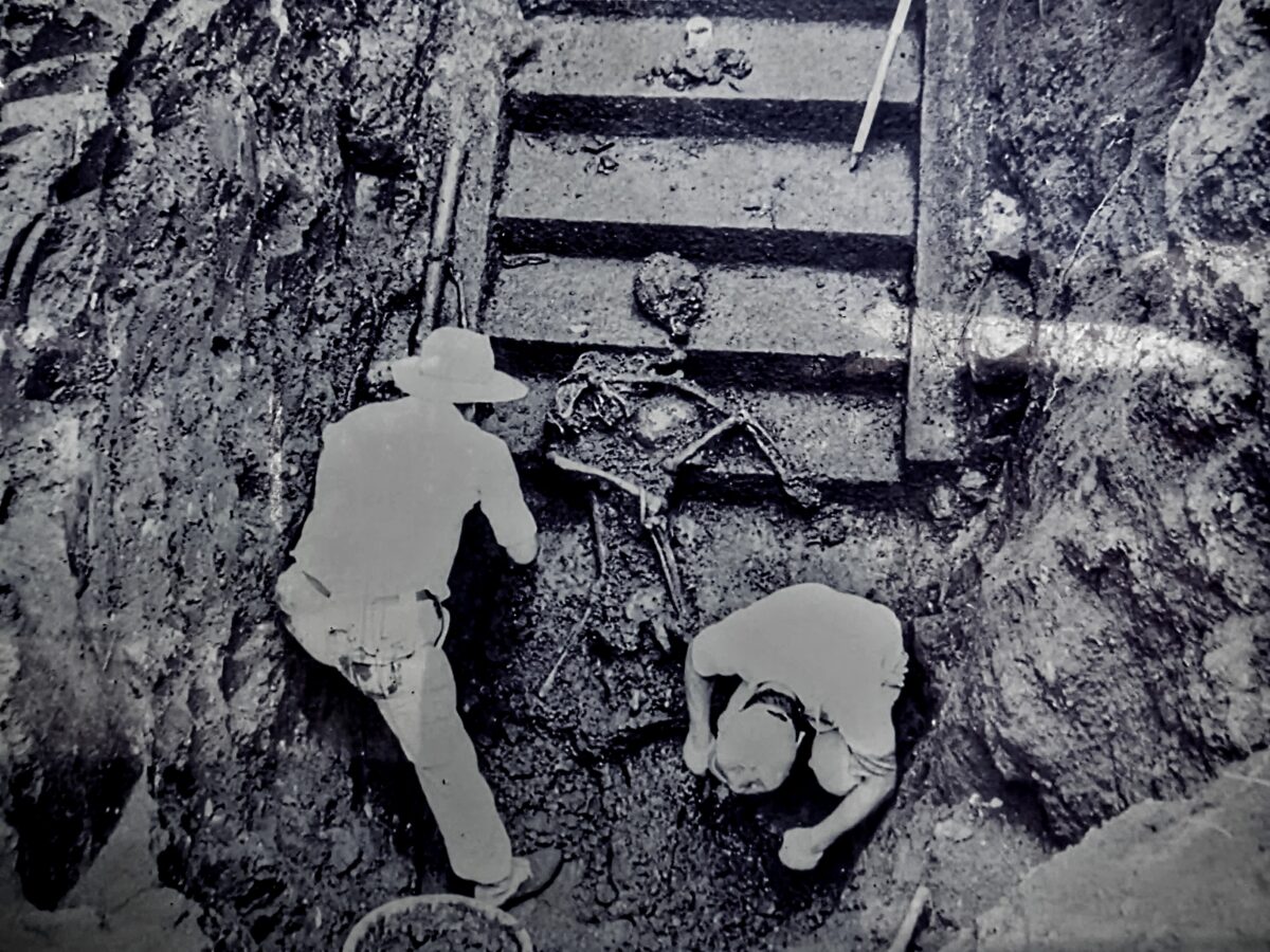 そして、その調査の際に発掘されたのは石段だけではありません。なんと2人の被災者の白骨遺体が見つかったのです。
