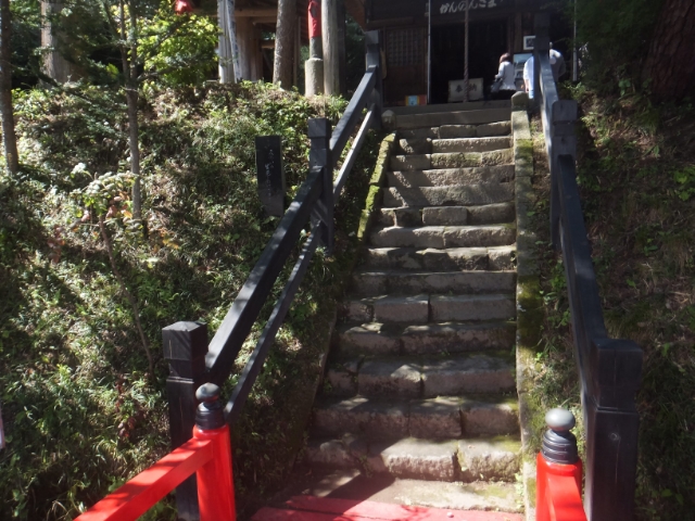 お堂に向けて15段ほどの石段が続いています。しかし、これはあくまで現在の姿。