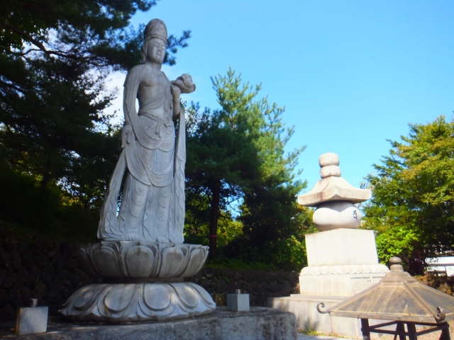 境内には大きな観音像。200回忌供養の際に建立されたそうです。