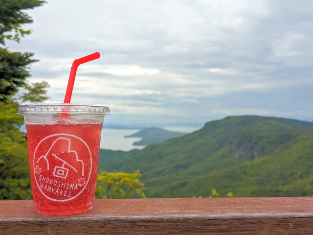 舞物はこちらの真っ赤な「寒霞渓もみじサイダー」。もみじ葉エキス100%とのことですが、まったく味の想像がつきません。もみじってどんな味でしょうか?