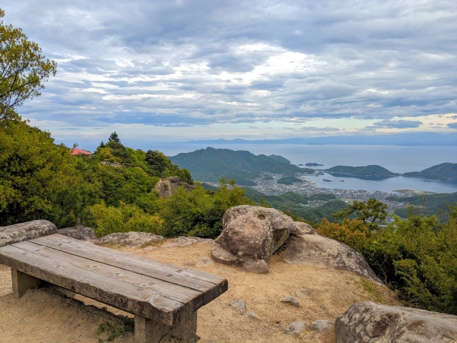 三笠広場から160mほど、緩やかな斜面を上っていくと鷹取展望台。休憩用のベンチが設置されており、柵などもないため開放感抜群。