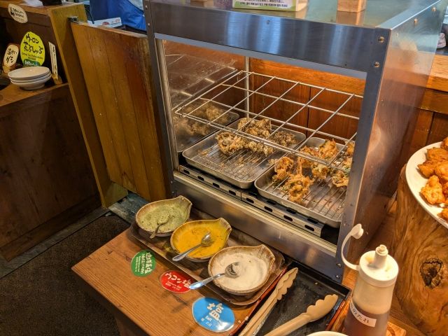 沖縄らしいメニューがそろったビュッフェタイプのレストラン。ホテルとは異なりリーズナブルな価格で利用できるのがポイント。沖縄そば、てびち、チャンプルー、天ぷらなど、いろいろな料理をたっぷり楽しむことができます!チョコフォンデュを見ると、アレやってしまうのは私だけ・・・?