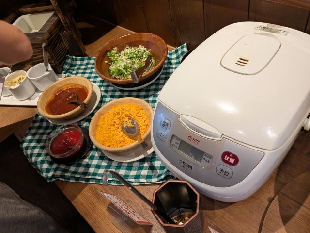 タコライス作りもあります。ミンチ、レタス、チーズ、ケチャップは全部好きなだけ載せ放題。お好みの味に仕上げられます。