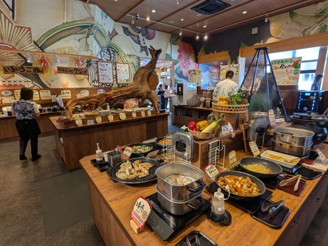 沖縄菜園ビュッフェ カラカラは、アウトレットモール「あしびなー」のすぐそばにあるビュッフェレストラン。