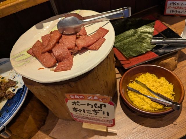 ポータマおにぎりコーナーも!ポークことスパムを好きなだけ増量できるなんて、まるで夢のようです。