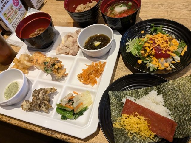 カレーや、ジェノベーゼ、餃子、ビーフシチュー、唐揚げなどに目を引かれながらも、ここはあえて沖縄メインで仕上げてみました!野菜が少ないのは仕様です。