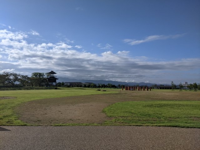 1999年には国の史跡に指定、現在は史跡公園として整備されて一般開放されています。早朝に訪問したのですが、お散歩している方がたくさん。憩いの場といった雰囲気の場所です。