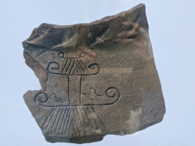 近くの案内板には、そんな土器の写真も掲載されております。たしかにくるりんとした姿で描かれていますね。