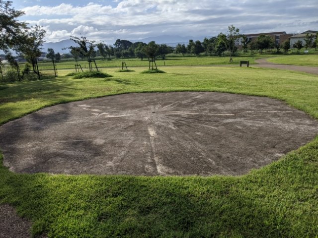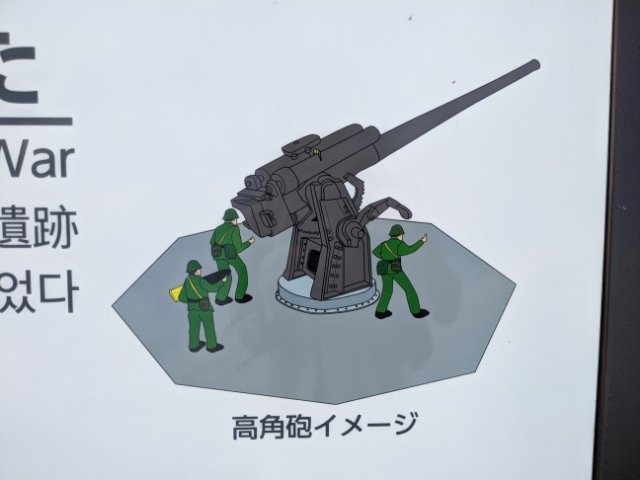 ここは太平洋戦争の末期に高角砲の台座跡。近くに作られた海軍柳本飛行場を警備するために設置されました。かつては他にも多くの台座が置かれていましたが、現在残っているのは、ここともう一か所のみとのことです。