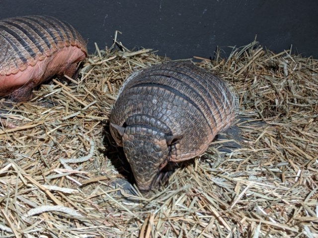 そんな中せわしなく動いていたのはムツオビアルマジロ。敷かれたワラをごそごそとしてます。アルマジロの多くは夜行性とのことですが、この種は昼行性とのこと。この子たちがいなかったら、全員爆睡でした。