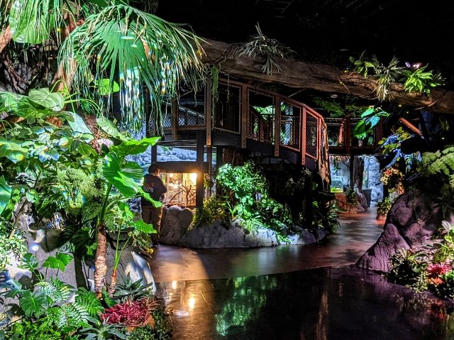 2階は亜熱帯気候が織りなす常緑の森のフロア。ジャングルが広がる館内は、わくわくする雰囲気。南米の色鮮やかな淡水魚やヘビやトカゲといった爬虫類も展示されています。