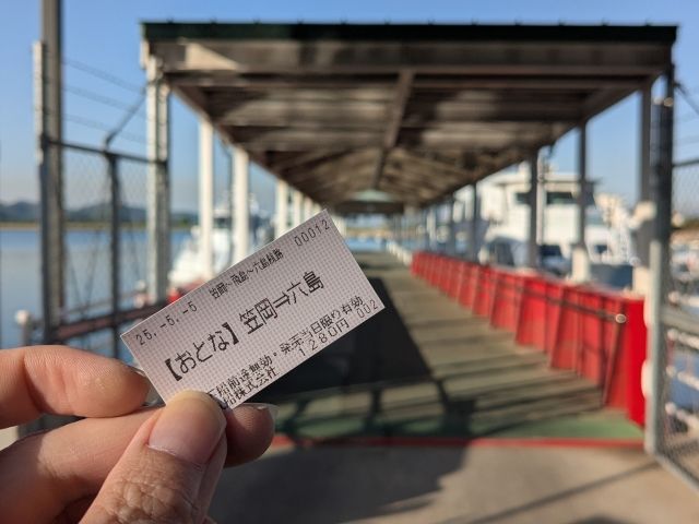 笠岡から六島までの運賃は1,280円。自動券売機でチケットを購入したら、乗船開始までしばらく待機。