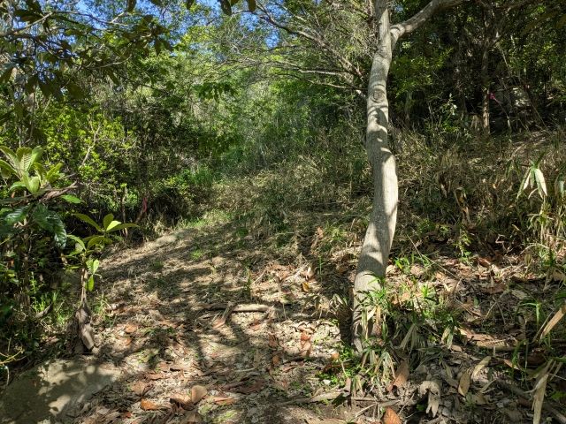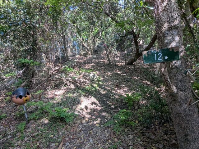 10分ほど休んで下山開始。山頂からは道が分かれており、「湛江(たたえ)方面」に抜ける道か、前浦港に戻る「小学校方面」への道があります。