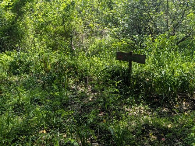 しばらく続くヤブコギ。道中には案内もなく、これちゃんと下山できるのかな・・・?不安になったあたりで、小学校への案内板が見えてきて一安心。