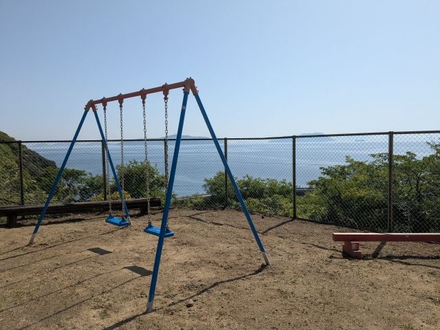 ということでたどり着きました小学校!海が見えるブランコ、めっちゃ良いですね!!!