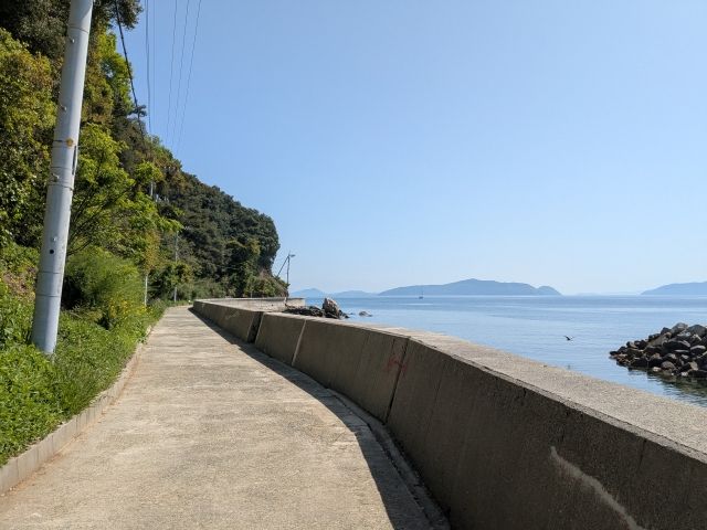 小学校から集落内を進み、前浦港に帰ってきました。帰りの船は湛江港から乗船予定なので、湛江方面へ進みます。海沿いの平坦な道で快適です。