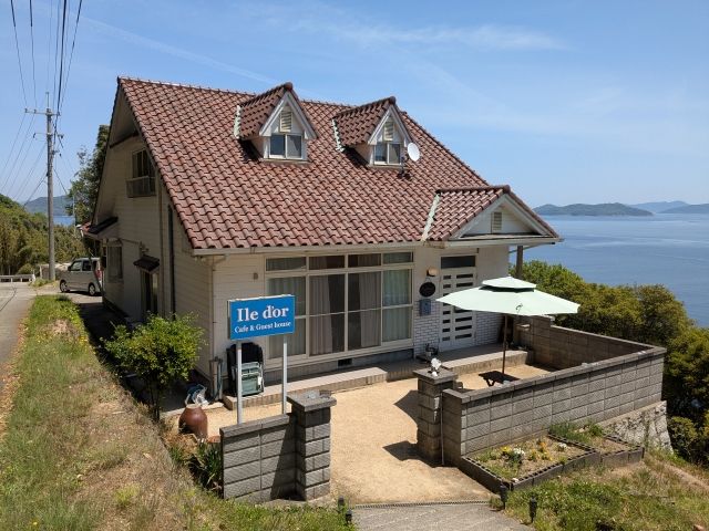 ぽつんぽつんと民家がある中、なんともおしゃれな建物が。こちらはカフェ&ゲストハウス Ile d’or(イルドール)。どんな宿なのかなとGoogle Mapを見て見ると、めっちゃクチコミ評価高い!!こんな辺境なのに、非常に人気な宿のようです。