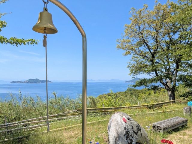 イルドールのすぐ先にある恋人岬。鐘と流木のモニュメントが置かれています。